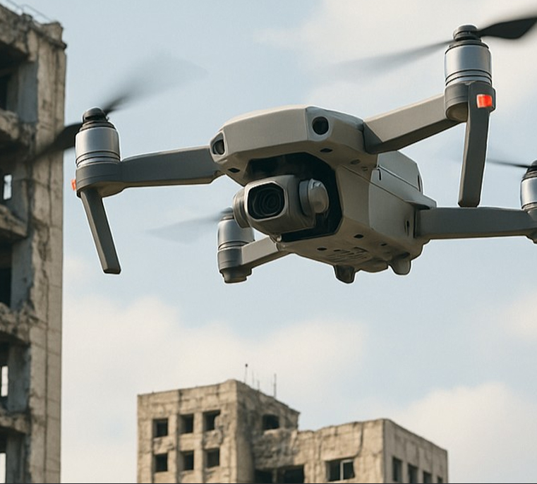 โดรนบินรอบอาคารเพื่อสร้างแบบจำลองอาคารทั้งหลังแบบ 3 มิติจากภาพจริง (ไม่ใช่กราฟิก) ใช้ในการตรวจสอบความเสียหายภาพรวมหลังเหตุแผ่นดินไหว ได้ทันการณ์