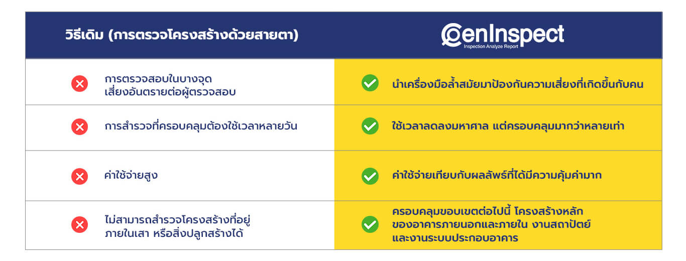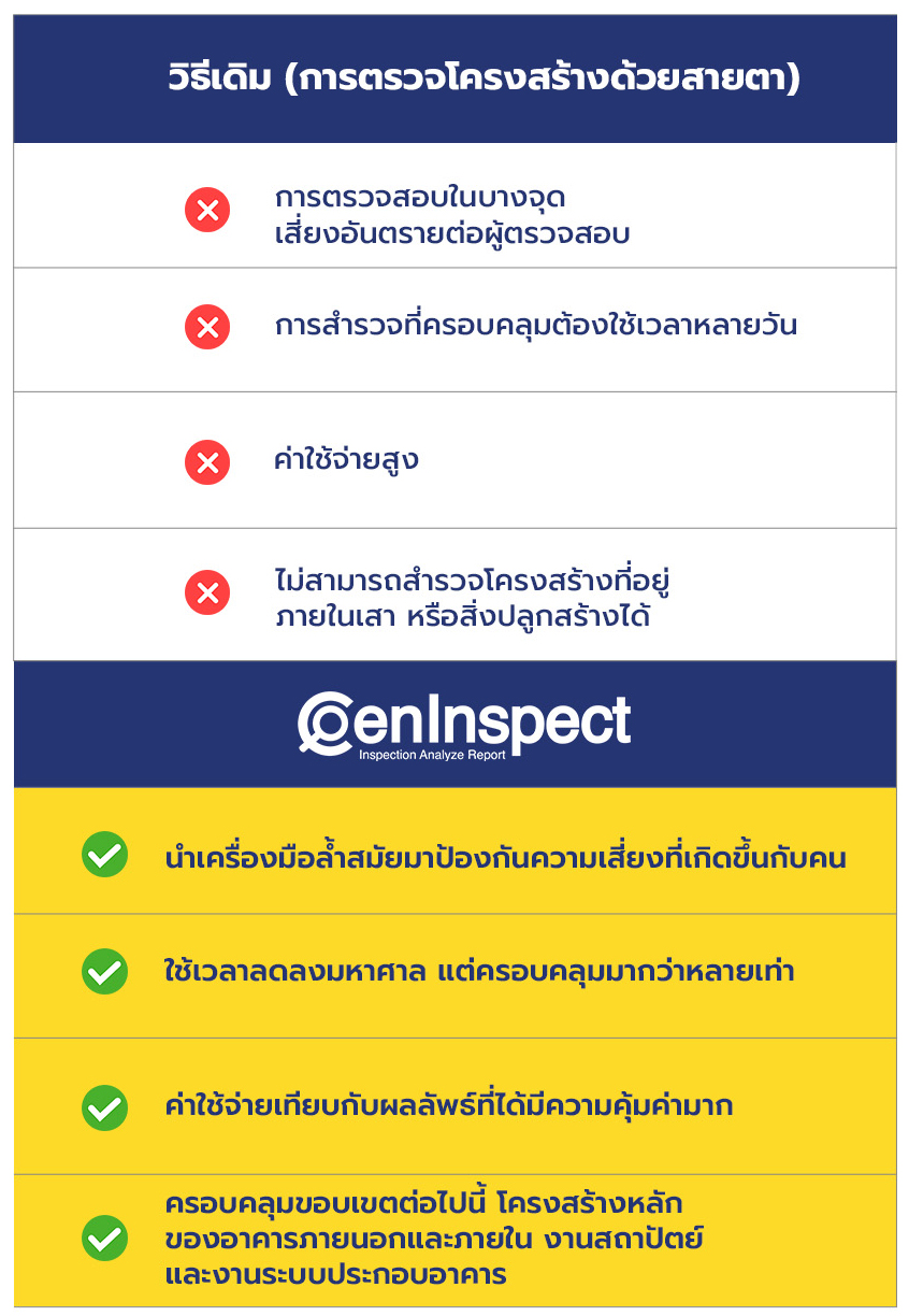 ด้วยการตรวจสอบ NDT แต่ต้องครอบคลุมโครงสร้างทั้งอาคารภายนอก ทุกซอกทุกมุม
